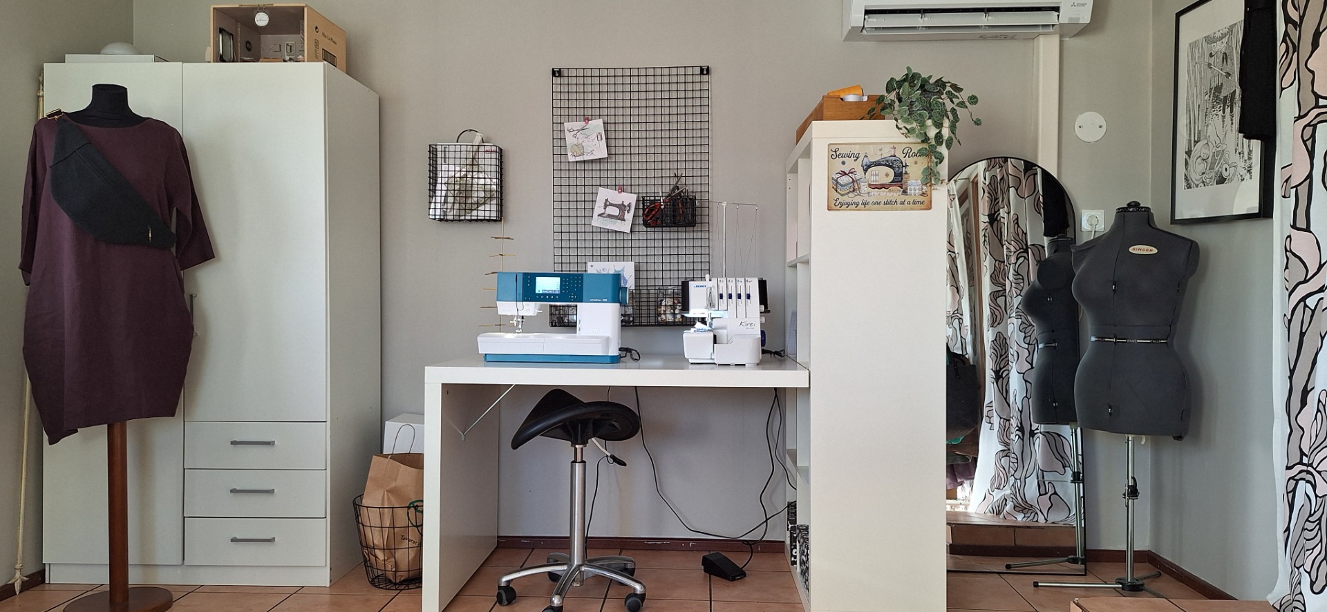 Olen Niina, viidenkympin kynnyksellä oleva käsillä tekemisen intohimoinen ystävä. Kotona minulla on teini-ikäinen tytär sekä karvaiset kaverit - koira ja kissa -jotka pitävät huolen siitä, että arki ei käy tylsäksi. Ompelimoni sijaitsee nykyisin vanhassa lapsuudenkodissani rauhallisella asuinalueella.